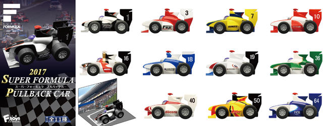 2017年の全日本スーパーフォーミュラ選手権に参戦した全11チームのマシンがプルバックカーとなって発売されております。